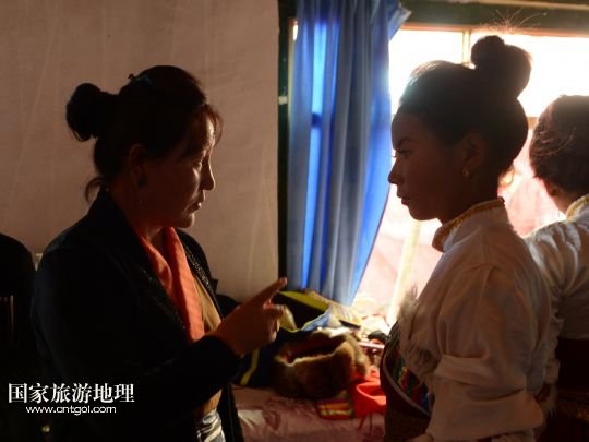 組建戲團(tuán)十多年,如今的瓊達(dá)已經(jīng)44歲了,孫子丹增覺美已經(jīng)兩歲多。8月6日,甲熱村里古老的覺木隆寺舉行雪頓節(jié)曬佛慶典,藏戲團(tuán)的演出自然是慶典必不可少的內(nèi)容。8日劇團(tuán)更要趕赴羅布林卡,參加一年最重要的演出。即使在這樣繁忙的時(shí)候,瓊達(dá)仍然承擔(dān)著帶孫子的任務(wù)。瓊達(dá)的兒女都沒有接手藏戲團(tuán)的打算,但是小小年紀(jì)的丹增覺美卻已經(jīng)展現(xiàn)出了對藏戲的興趣,這或許為憂心村里藏戲團(tuán)傳承的瓊達(dá)帶來了一絲安慰。 /新華社記者 宋振平 曾毅 攝影報(bào)道