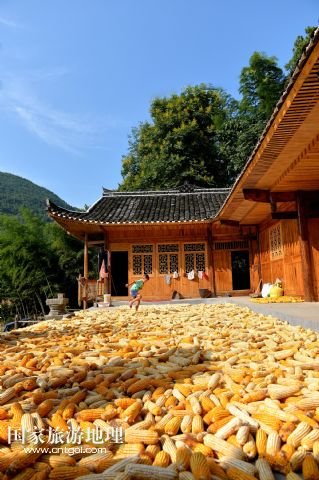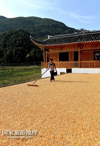 國家旅游地理 湖北恩施8月22日訊 8月22日,湖北省宣恩縣水田壩村二組農(nóng)民侯慶云在吊腳樓前晾曬玉米。初秋時(shí)節(jié),湖北省恩施土家族苗族自治州宣恩縣農(nóng)民搶抓時(shí)節(jié),對(duì)玉米等農(nóng)作物進(jìn)行收獲晾曬,山鄉(xiāng)家家戶戶忙“曬秋”,到處是一派豐收景象。 /新華社發(fā)(宋文 攝)