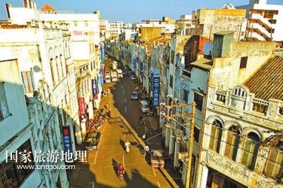 國家旅游地理 海南???月24日訊 海口騎樓歷史文化街區(qū)(簡稱騎樓老街),是??谧罹咛厣慕值谰坝^。2009年6月10日,首屆“中國歷史文化名街評選推介”活動在北京揭曉,??隍T樓老街榜上有名。??隍T樓老街以其唯一性、獨特性榮獲首批十大“中國歷史文化名街”稱號。從2010年開始,??谑幸褑域T樓老街改造項目。海口騎樓老街已成為了解??诔鞘袣v史的活畫冊。