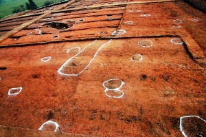 荷花山遺址已發(fā)現(xiàn)有裝飾性很強(qiáng)的陶片,這是不是中國(guó)最早的彩陶?而從分布密集的柱洞看,早期的衢州人會(huì)不會(huì)住在半穴式房屋內(nèi)呢?在荷花山遺址的西區(qū),發(fā)現(xiàn)有大量的石器、塊石混合遺跡,這是不是“石器制造場(chǎng)”?而從已發(fā)現(xiàn)有“田”字紋飾等陶片來(lái)看,這會(huì)不會(huì)祖先已有原始文字、宗教的意識(shí)?
