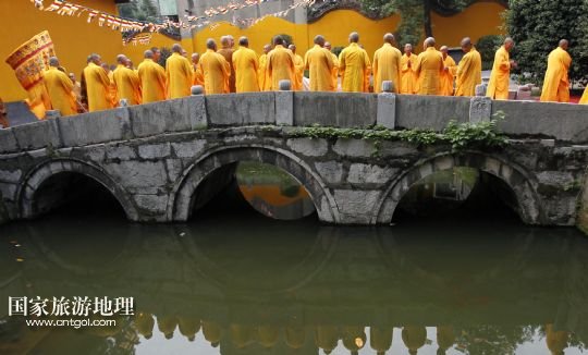 國家旅游地理 江西九江10月23日訊 這是千年古剎九江能仁禪寺外景(10月18日攝)。能仁禪寺坐落在江西九江市區(qū),舊名承天院,始建于南朝梁武帝時代(公元503-528年),已有1500余年的歷史。能仁禪寺為九江市現(xiàn)有最大的古建筑群,內(nèi)有氣勢雄偉的大雄寶殿,以及金剛殿、鐵佛殿、左右禪房及藏經(jīng)樓等古建筑,并有大勝寶塔、雙陽橋、飛來石船等“能仁八景”珍貴遺跡。1983年,能仁禪寺被國務院確定為漢地佛教全國重點寺院。 /新華社記者薛東梅攝