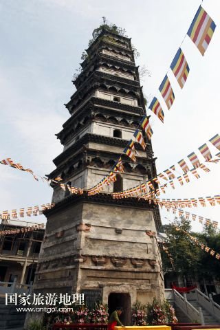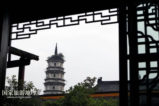 能仁禪寺中的大勝寶塔是九江市的標志,始建于唐代宗大歷元年(公元766年),明洪武十二年(公元1379年)重建。塔為磚石結(jié)構,塔高43米,分七層六面,塔內(nèi)有磚砌梯階,可盤旋而上(10月18日攝)。