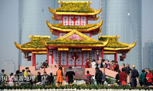 國家旅游地理 江西南昌11月7日訊 菊花展上微縮版“滕王閣”高9米(11月7日攝)。11月7日,在江西南昌市紅谷灘新區(qū)舉行的第25屆菊花展上,100萬盆各色菊花爭(zhēng)奇斗艷,吸引了眾多游客和市民前來觀賞。 /新華社記者 周科 攝