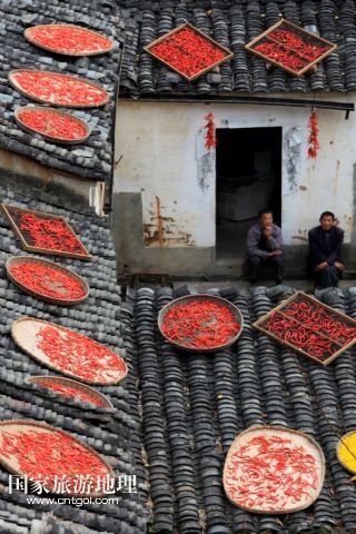 國(guó)家旅游地理 安徽黃山11月11日訊 11月10日,黃山市歙縣霞坑鎮(zhèn)湖山村住戶(hù)的屋頂晾曬著各種農(nóng)作物。秋末冬初,安徽省皖南黃山市歙縣鄉(xiāng)村農(nóng)戶(hù)種植的玉米、南瓜、辣椒等農(nóng)作物陸續(xù)收獲,古村中房前屋后、庭院屋頂曬滿(mǎn)果實(shí),構(gòu)成一幅幅美麗的“曬秋圖”。 /新華社發(fā)(施廣德 攝)