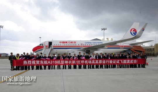 國家旅游地理 湖北神農(nóng)架4月28日訊 4月28日,試飛成功后機(jī)組人員在飛機(jī)前合影留念。當(dāng)日,東航A319機(jī)型在神農(nóng)架紅坪機(jī)場通過高高原運(yùn)行驗證,試飛成功。神農(nóng)架機(jī)場海拔高度2580米,是華中地區(qū)海拔最高的機(jī)場,將于5月8日正式通航,首飛東方航空公司的上海—武漢—神農(nóng)架航線。從武漢到神農(nóng)架的旅途時間將由過去乘汽車9小時縮短至50分鐘。 /新華社記者 郝同前攝