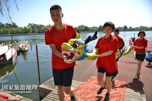 國家旅游地理 北京5月28日訊 5月28日,龍舟賽開始前,工作人員按照傳統(tǒng)儀式將“神龍”請(qǐng)上碼頭點(diǎn)睛。當(dāng)日,北京什剎海街道舉辦迎端午節(jié)系列活動(dòng),通過賽龍舟和纏繒子、吆喝表演等豐富多彩的民俗文化活動(dòng),讓端午節(jié)的傳統(tǒng)習(xí)俗回歸百姓生活,彰顯什剎海地區(qū)民俗文化的特色。新華社記者 李鑫 攝