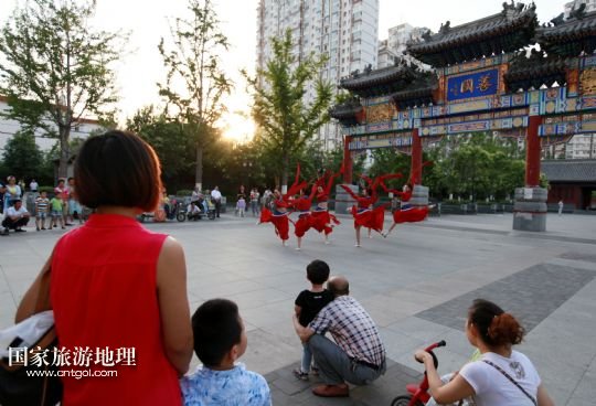 國家旅游地理 山東滕州6月14日訊 6月13日,在山東省滕州市老縣衙善國文化廣場(chǎng),滕州柳琴劇團(tuán)演員向市民展演柳琴戲。