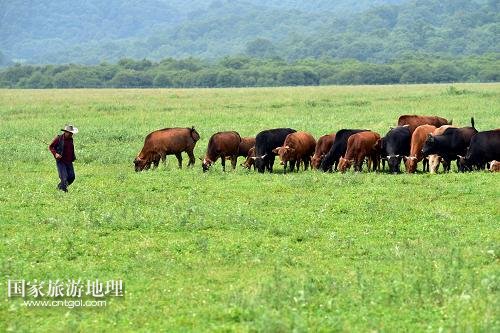 7月13日,農(nóng)戶(hù)在神農(nóng)架大九湖高山濕地放牛。