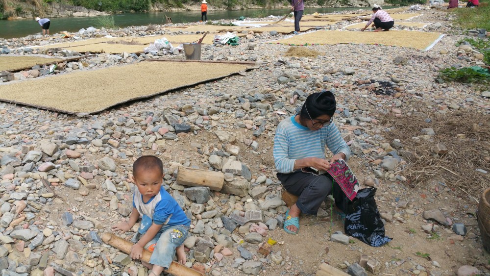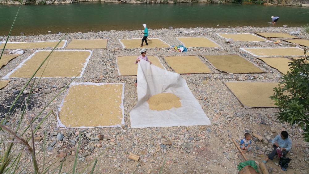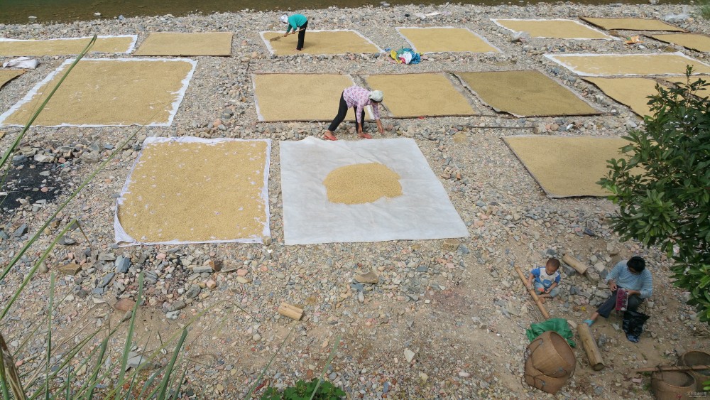 豐收的貴州黔東南州榕江縣寨蒿鎮(zhèn)烏公村曬谷子美景