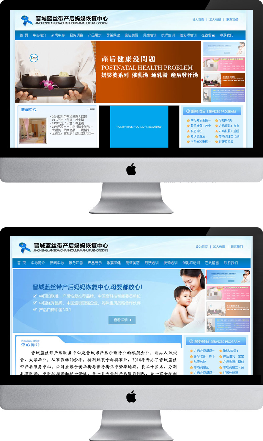 晉城藍(lán)絲帶產(chǎn)后服務(wù)中心是晉城市產(chǎn)后護(hù)理行業(yè)的旗艦企業(yè)。創(chuàng)辦人耿俊青,大學(xué)畢業(yè),從事醫(yī)學(xué)20余年,特別熱衷于母嬰事業(yè),2010年開辦了晉城藍(lán)絲帶產(chǎn)后服務(wù)中心。公司坐落于黃華街與步行街正中繁華地段,員工十多名,分別具有醫(yī)師、中醫(yī)按摩師和護(hù)士資格,是一支專業(yè)的產(chǎn)后服務(wù)團(tuán)隊(duì),是一家女性創(chuàng)業(yè)公司。自公司成立以來,以“媽媽順心、爸爸放心、孩子開心,老人安心”為己任,創(chuàng)造性地整合各種優(yōu)質(zhì)資源,致力于追求為晉城市每個(gè)家庭創(chuàng)造和諧、溫馨的家庭氛圍,在團(tuán)結(jié)奮斗中,為媽媽產(chǎn)后諸多問題,寶寶茁壯成長而努力奮斗。藍(lán)絲帶產(chǎn)后媽媽服務(wù)中心是晉城市最專業(yè)的產(chǎn)后媽媽服務(wù)企業(yè),是第一家創(chuàng)造“藍(lán)絲帶模式——產(chǎn)后媽媽王牌服務(wù)卡”的企業(yè),是晉城市第一家流程化服務(wù)產(chǎn)后媽媽及寶寶的企業(yè),是第一家成功引進(jìn)和實(shí)現(xiàn)“產(chǎn)后媽媽和寶寶專業(yè)服務(wù)”概念的企業(yè)。