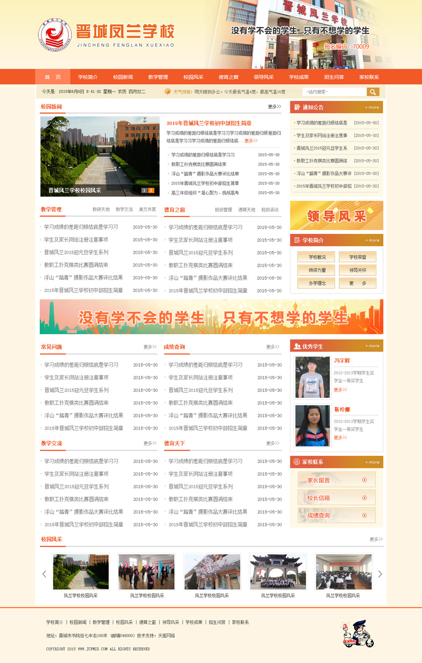 學(xué)校在重視學(xué)生文化課學(xué)習(xí)的同時(shí),重視學(xué)生的身心健康和校園文化建設(shè),關(guān)注每一個(gè)學(xué)生的心理健康,在全體鳳蘭人的共同努力下,鳳蘭學(xué)校2014年高考和中考都取得了優(yōu)異的成績(jī)。