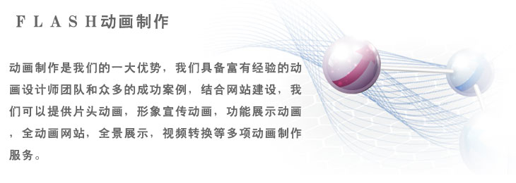 全動畫網站對于我們的動畫制作團隊來說是最樂于接受的挑戰(zhàn)。它要求完美結合目的,創(chuàng)意,設計,效果,展示和互動。對于瀏覽者來說這是一種全新的用戶體驗。全動畫網站可以實現很多普通網頁無法實現的效果,提供豐富的網絡應用。我們團隊在這方面也積累了豐富的成功實踐。